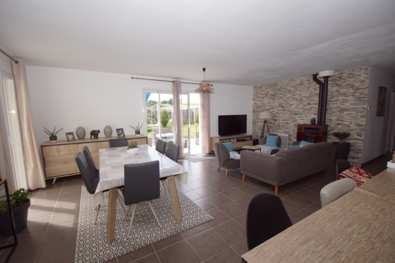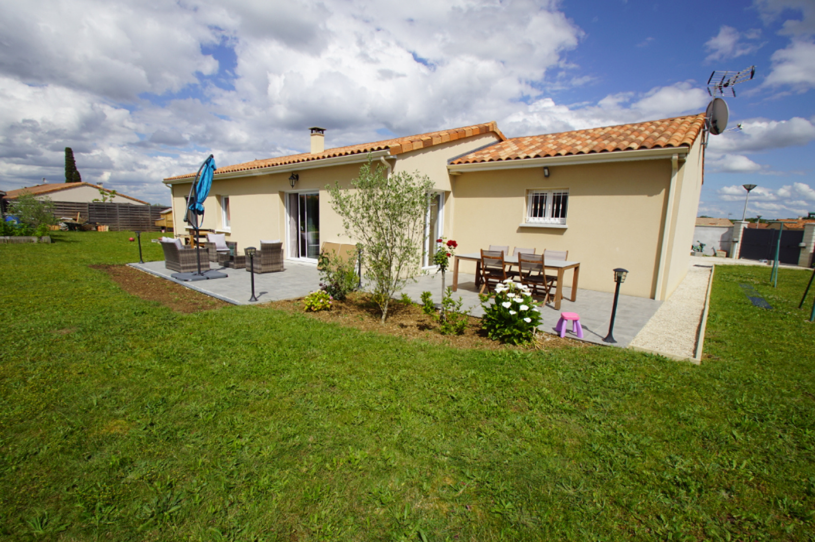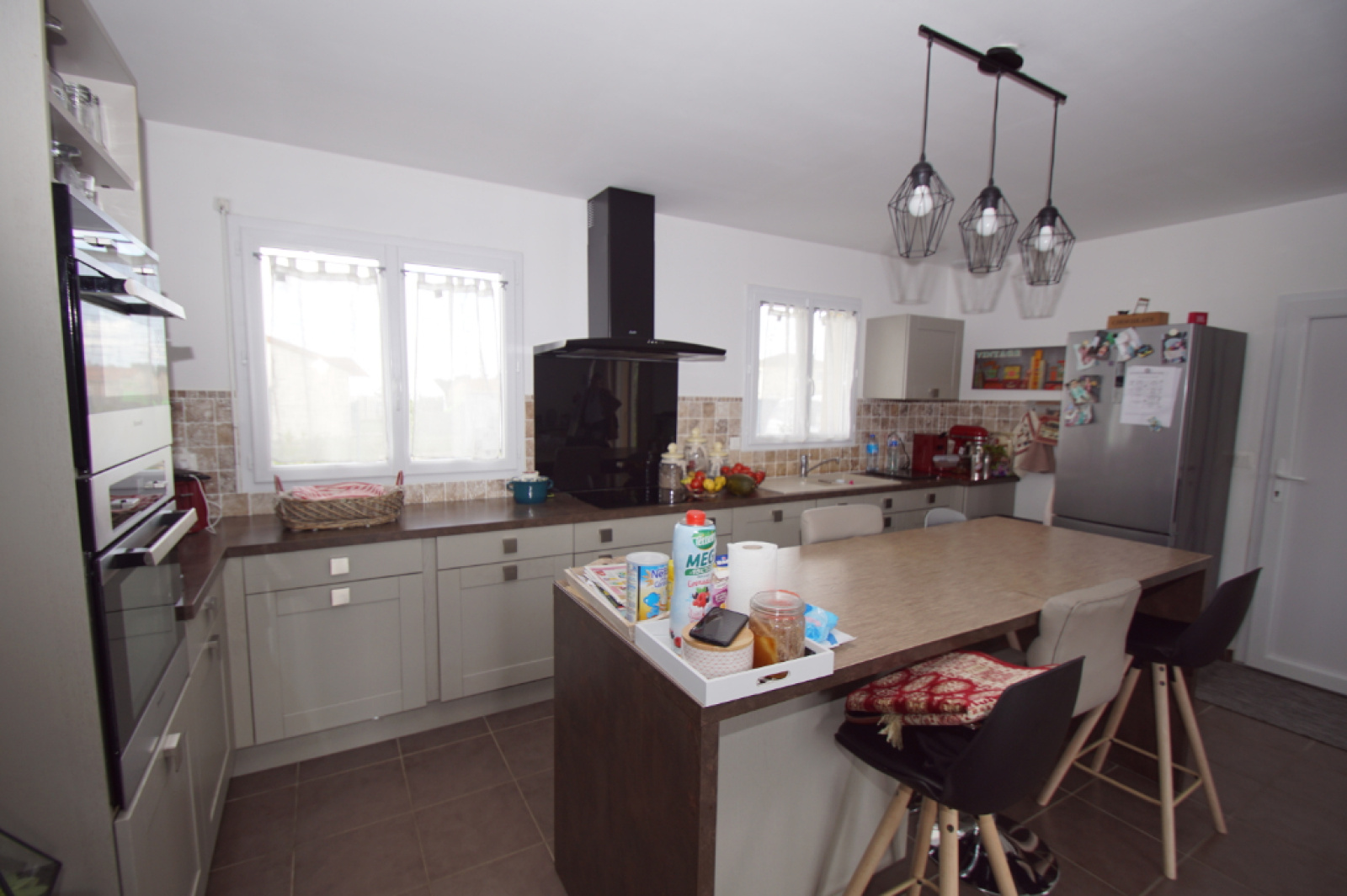 Maison d'environ 100 m² avec un garage de 19 m² en plus. Elle comprend une entrée desservant une grande pièce de vie lumineuse avec poêle et sa cuisine ouverte entièrement aménagée et équipée. le coin nuit se compose de Trois chambres avec placard d'une salle de bains avec baignoire et douche à l'italienne et d'un WC séparé. Terrain clos.    Frais d'agence inclus charge acquéreur : 6.36% TTC. (Prix: 173 000 ? hors honoraires)