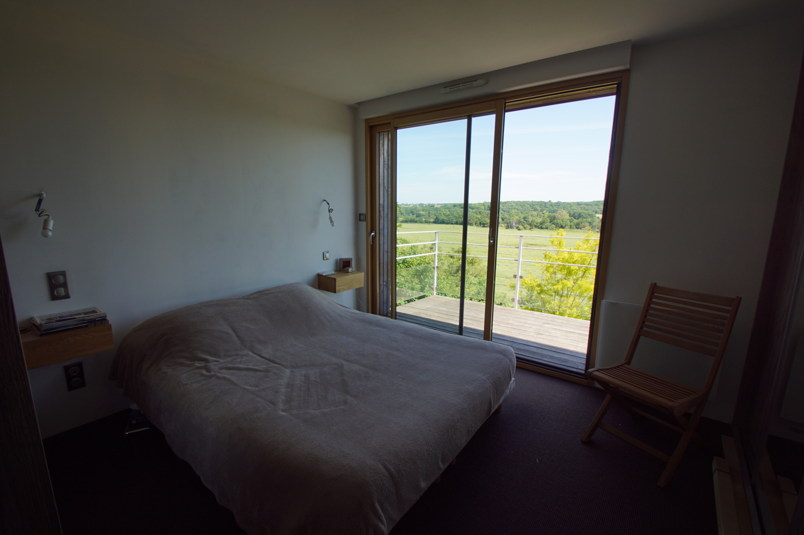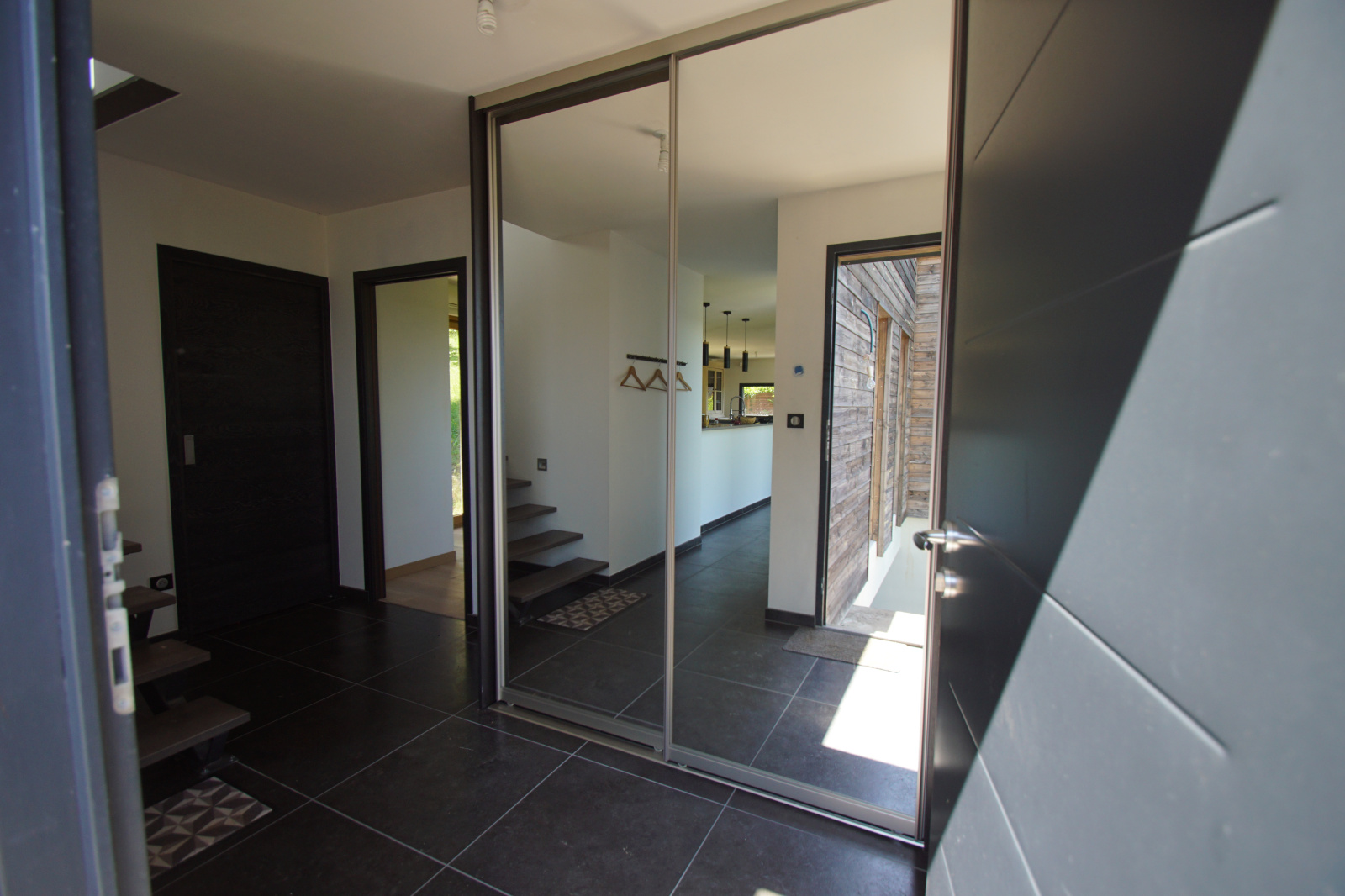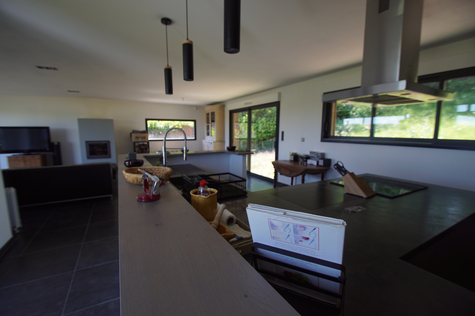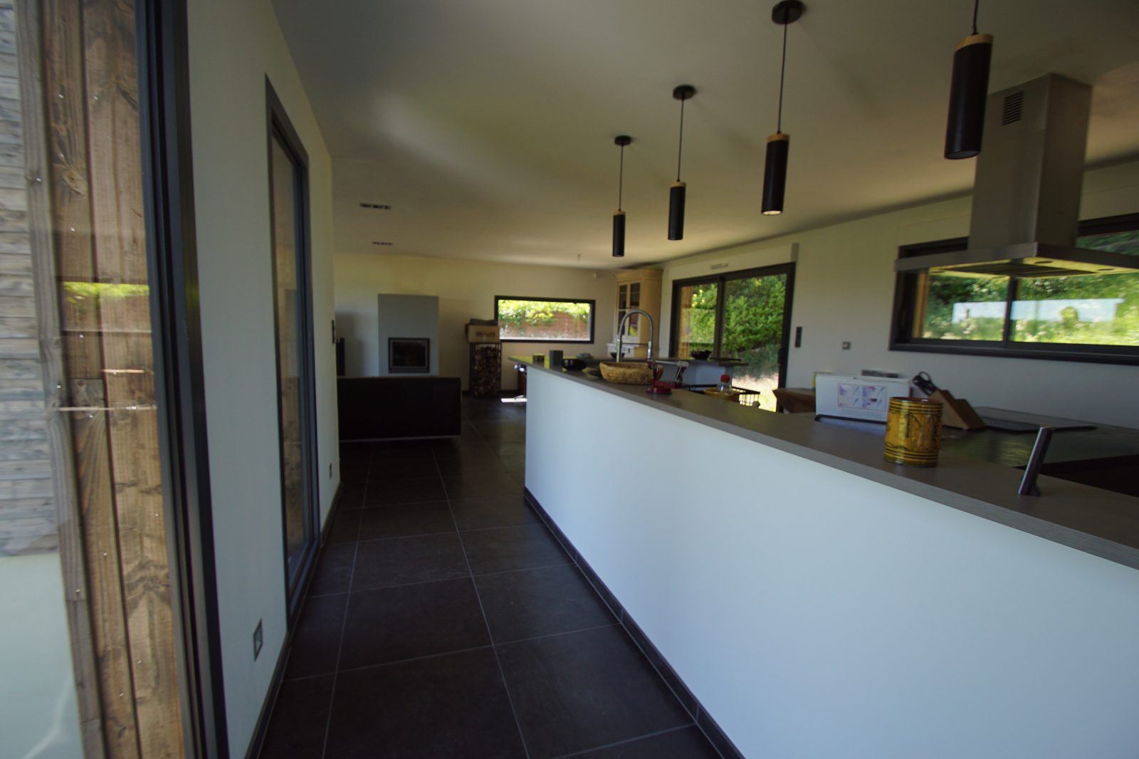 Iteuil (86240)Maison / Villa d'architecte de 2017 à 10 minutes de POITIERS sud comprenant une entrée desservant un bel espace de vie d'environ 70 m² avec cuisine américaine ouverte, une chambre avec salle d'eau et un WC séparé.