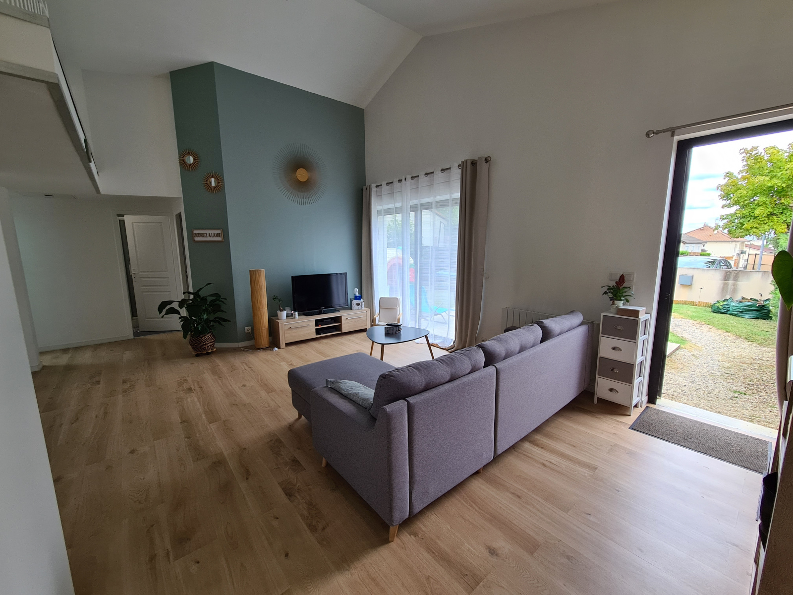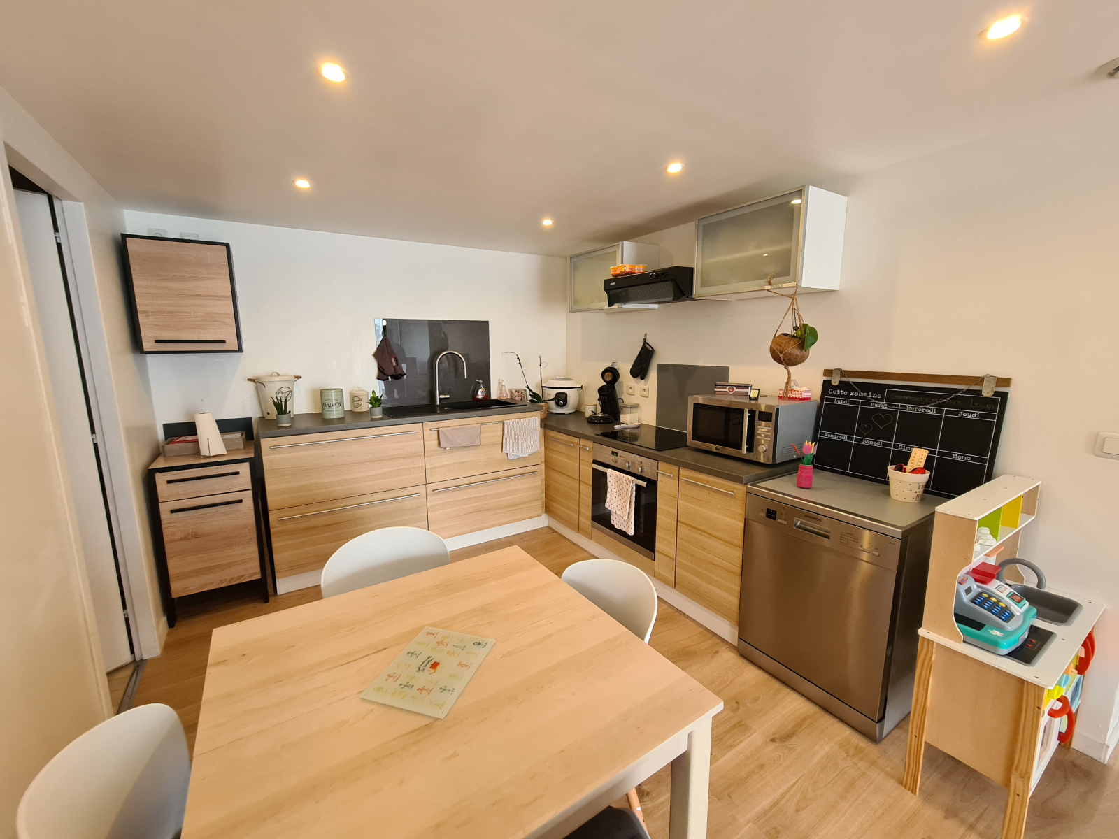 Très jolie maison en parfait état avec une belle hauteur sous plafond, d'environ 83 m² comprenant une grande pièce de vie très lumineuse avec coin cuisine ouvert entièrement aménagée et équipée, petite arrière cuisine/buanderie, deux chambres dont une avec dressing, une salle d'eau et un WC.