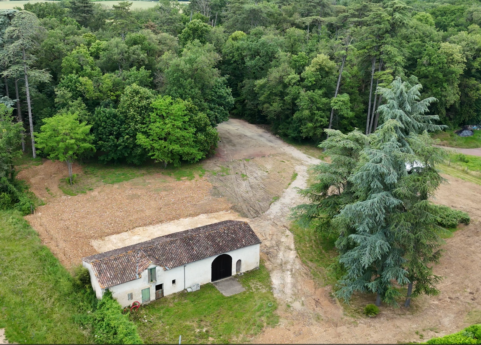 Il est facile d'imaginer la rénovation de cette dépendance d'environ 110m² au sol avec une extension moderne et vue sur le bois.
