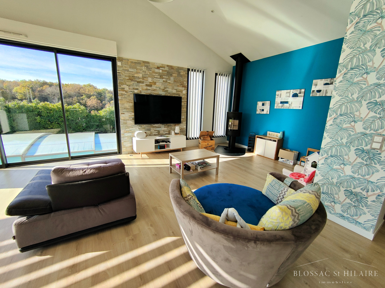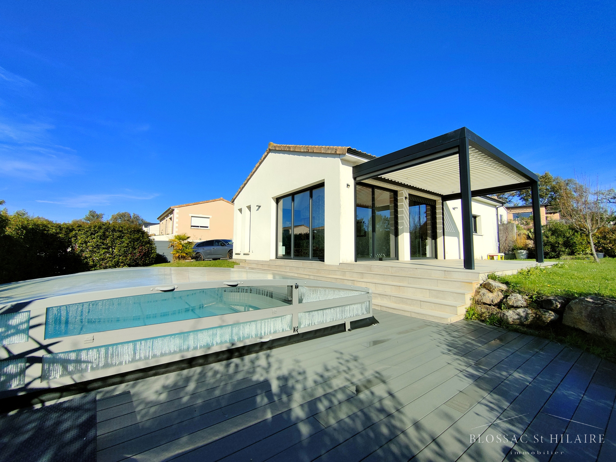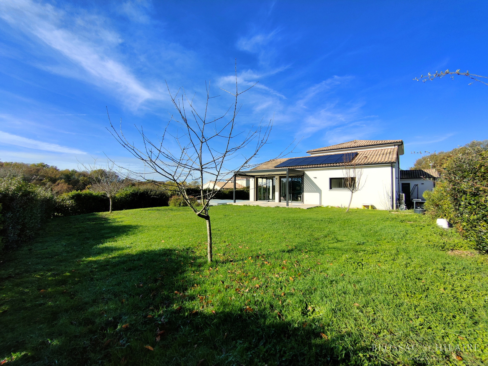 Maison familiale construite en 2016 d'environ 170m², sur 933m² de parcelle arborée, avec piscine.