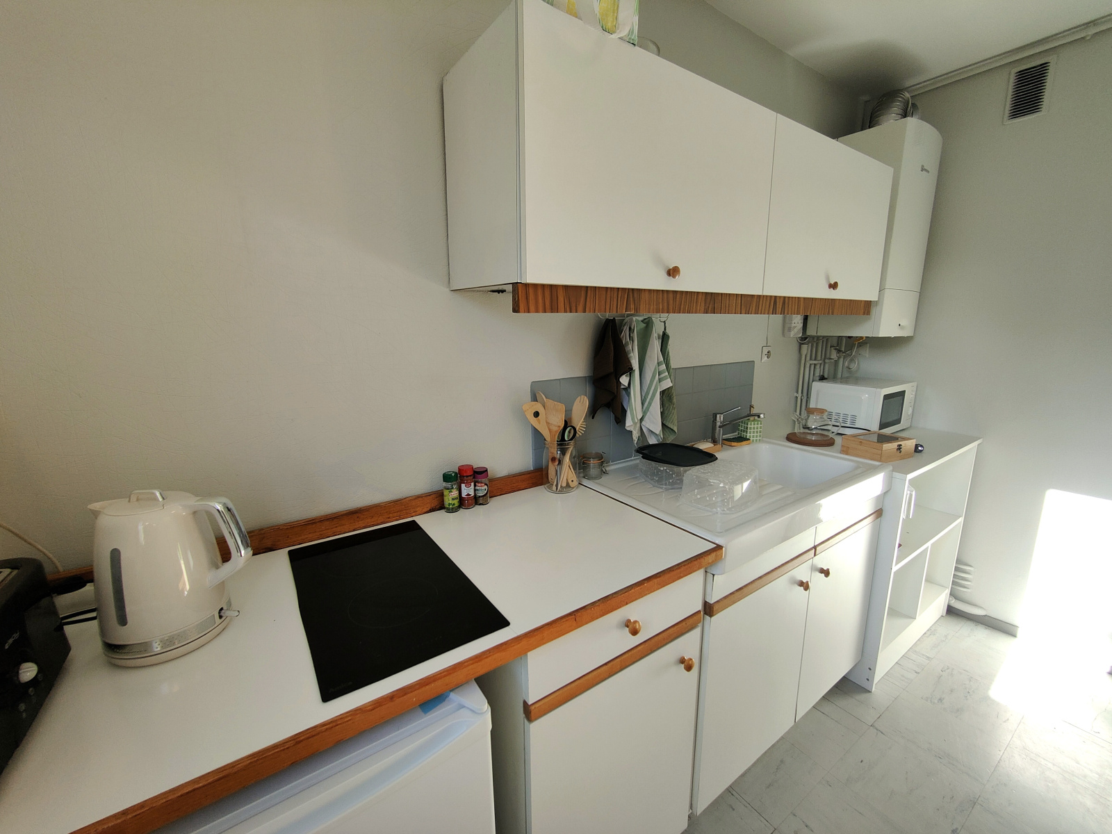 Studio meublé d'environ 29m², avec pièce de vie de 20,90m², salle d'eau de 3,84m² et cuisine de plus de 5m².