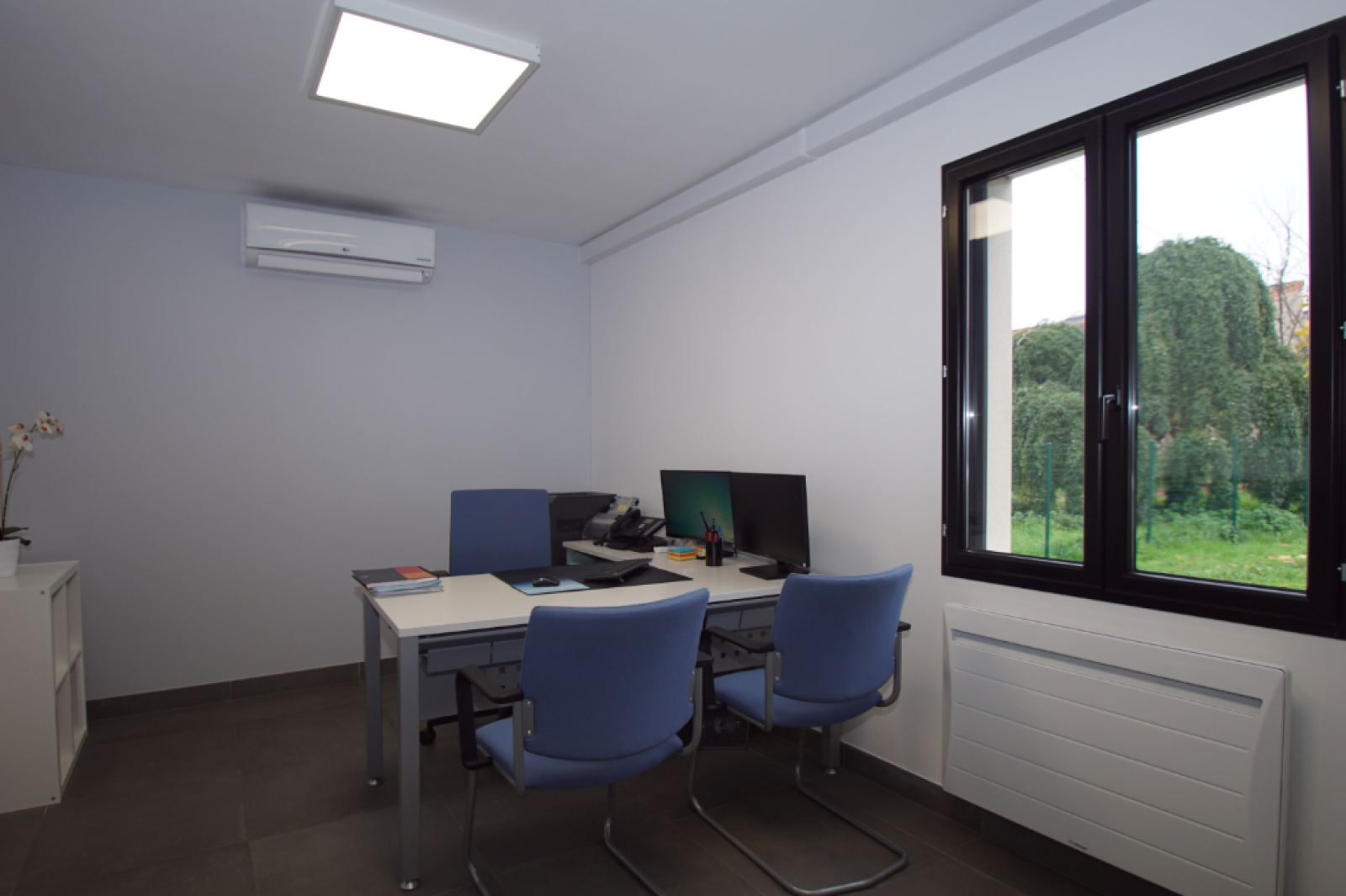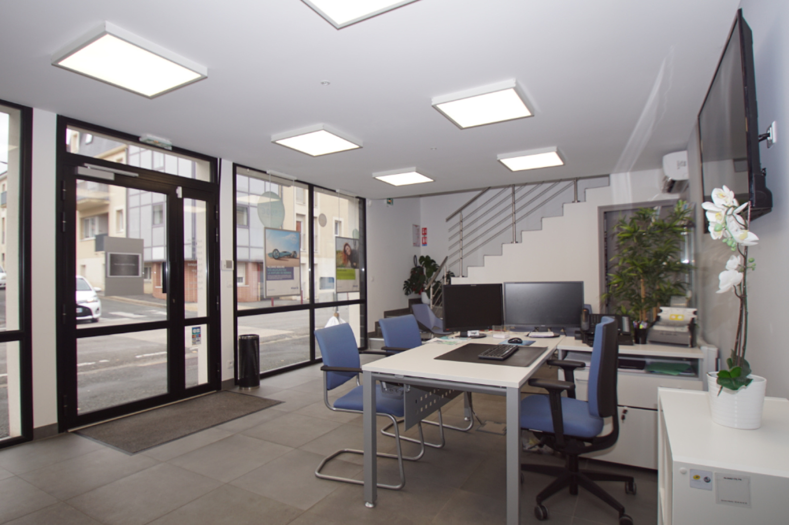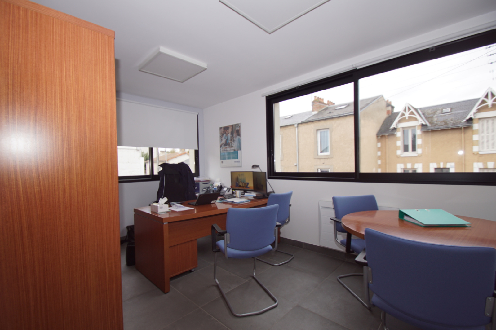 Poitiers Local commercial actuellement loué. Construit en 2015 sur une parcelle de 399 m² environ. Sans contrainte d'accès pour les personnes à mobilité réduite. Ce bien immobilier comprend en rez-de chaussé un espace accueil, 2 Bureaux et un WC. A l étage une salle de réunion avec cuisine aménagée 2 Bureaux avec une salle d'archives et WC. Derrière l'immeuble 7 places de parking. Frais d'agence inclus charge vendeur : 5% TTC. (Prix: 340 000 hors honoraires)