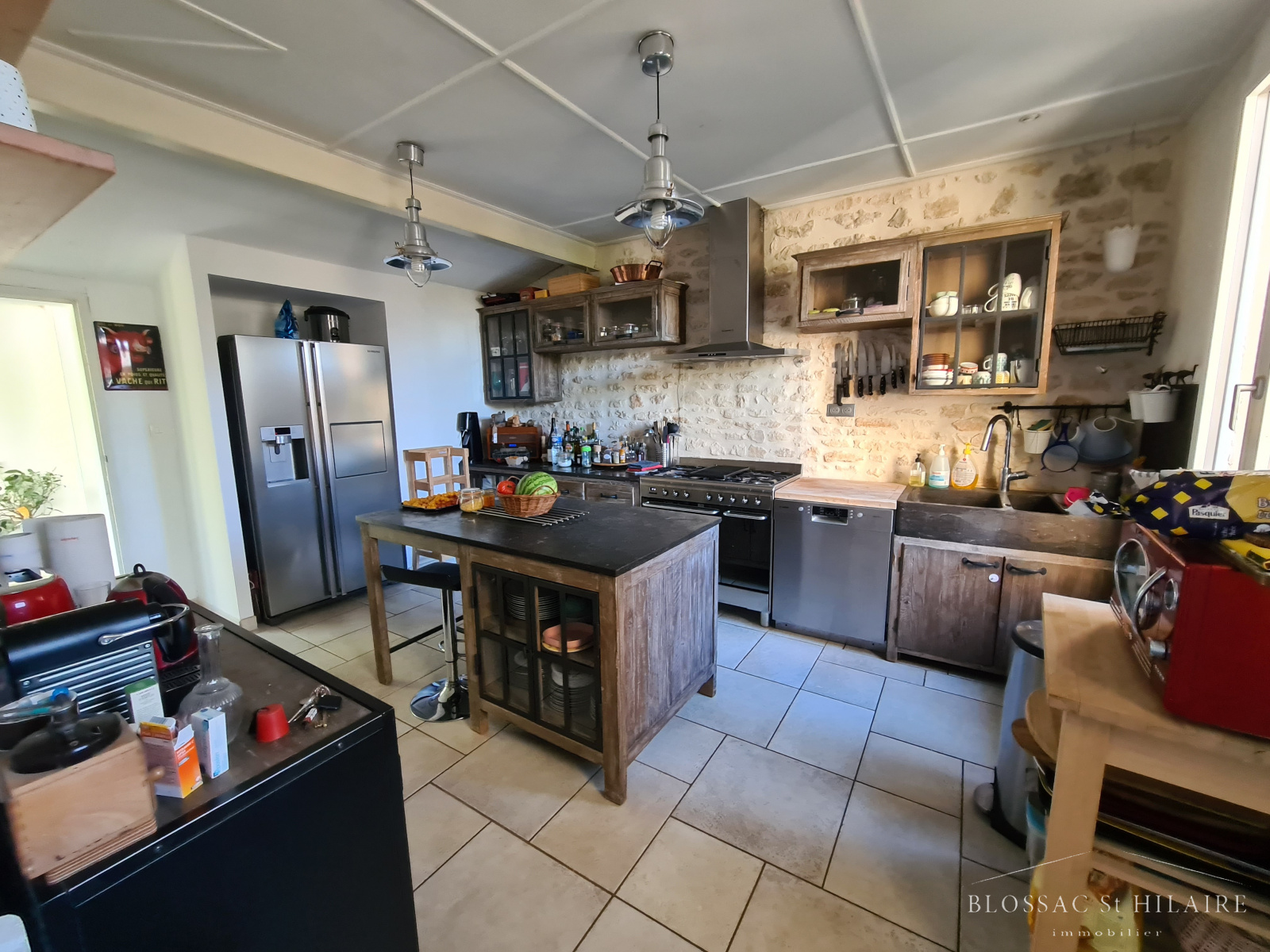 Maison d'habitation en excellent état comprenant au rez de chaussée : Une grande pièce de vie lumineuse et traversante d'environ 43 m² avec cheminée, une cuisine aménagée et équipée entièrement, une chambre, une salle d'eau avec WC et une buanderie.