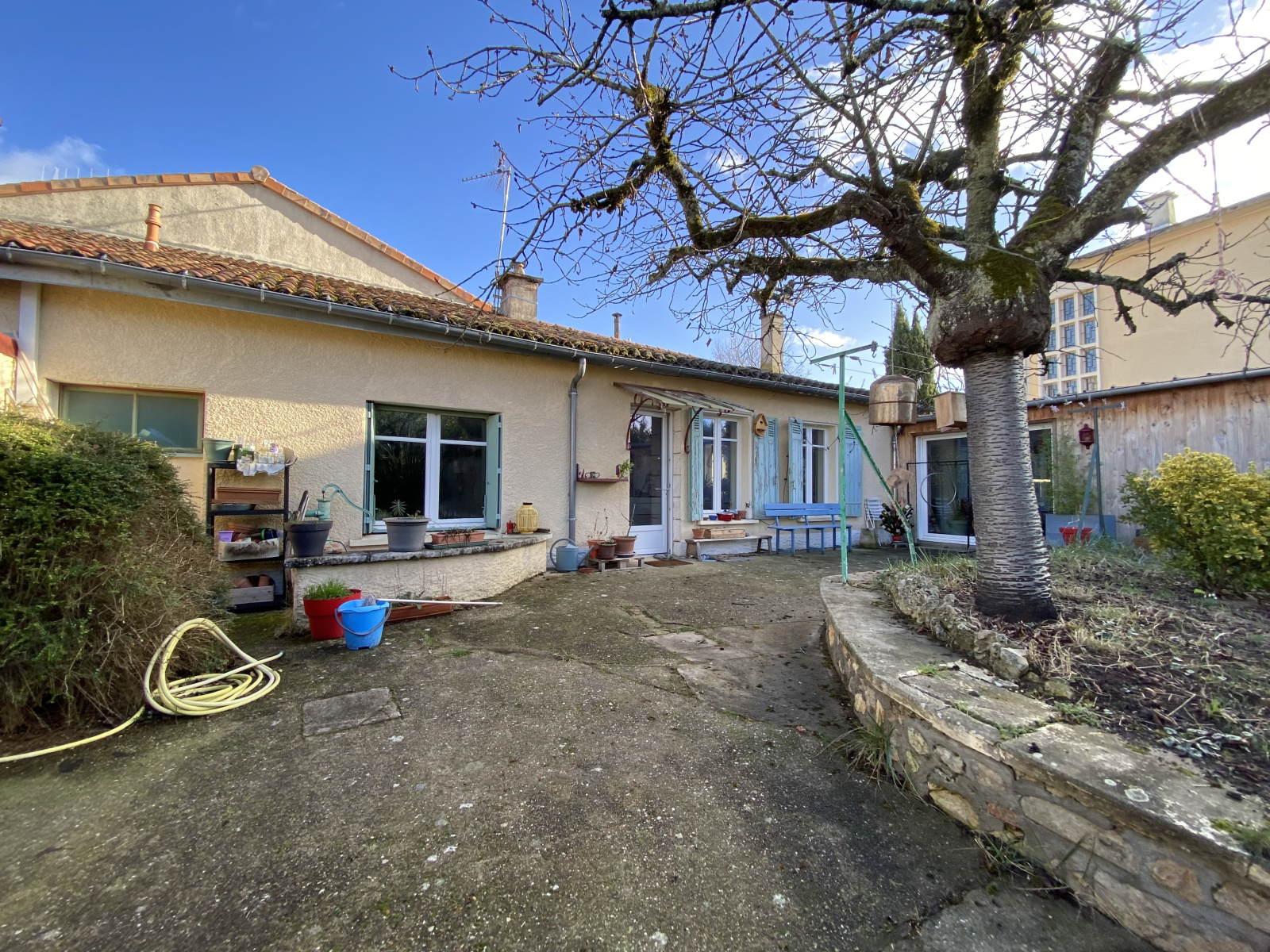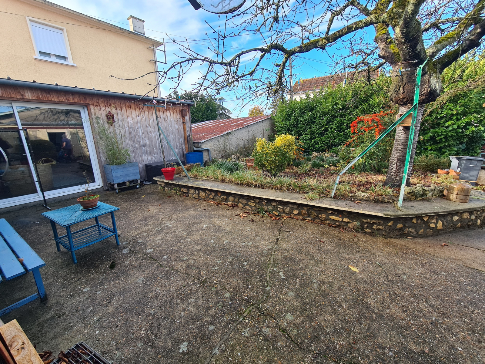 Petit jardin et cour devant la maison avec une dépendance d'environ 20 M2.