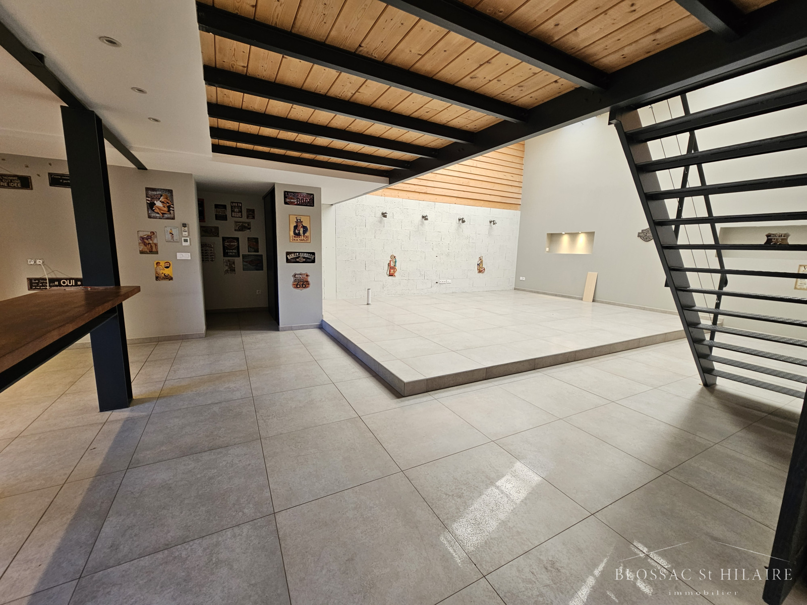 Cet ensemble immobilier comprend un entrepôt d'environ 210 m² avec mezzanine de 110 m² et une grande maison d'environ 230 m² habitable comprenant :
