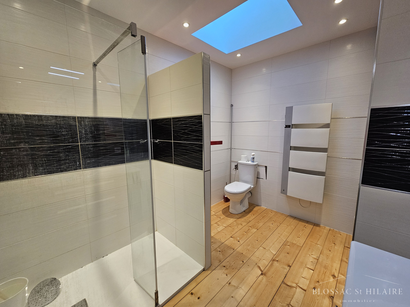 Une entrée avec placard desservant deux grandes pièces de vie d'environ 80 m² chacune avec deux cuisines ouvertes, aménagées et équipées, 5 chambres, deux salles d'eau, deux WC et un local technique.