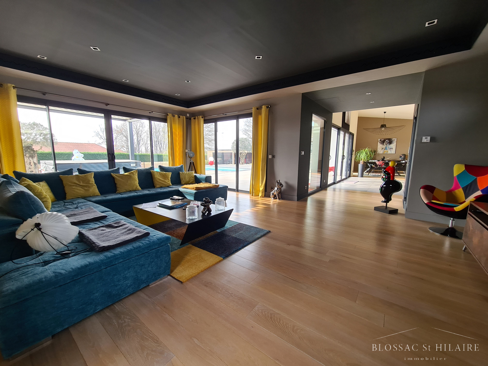 Marçay (86370)Située à 10 minutes de Poitiers sud. Maison contemporaine avec de belles prestations et de grands volumes offrant une superficie habitable de 300 m² environ. Elle se compose d'une entrée spacieuse, un espace cuisine équipée, une salle à manger, 5 chambres dont 1 chambre parentale avec dressing et salle d'eau avec wc, 1 salle de bains avec deux douches italiennes, un bureau, wc, une laverie et une chaufferie. En plus, un appartement independant de la maison comprenant une cuisine aménagée et équipée ouverte sur le séjour, une chambre, une salle d'eau, un wc. A l'extérieur une salle de sport, un garage double de 45m² environ, un atelier attenant au garage de 45m² environ, une dependance pour les outils de jardin et velos de 19m² environ, une piscine chauffée de 4,5m par 9,5 m et un jardin cloturé et arboré de 2000 m² environ.