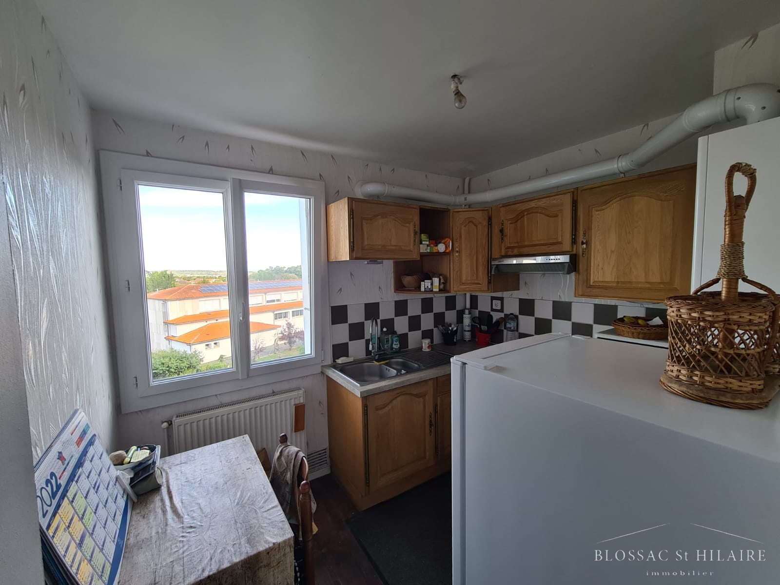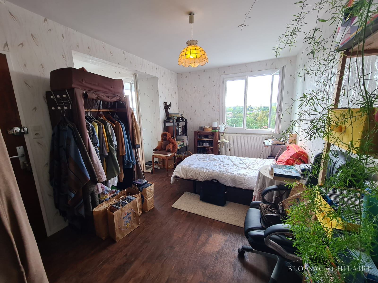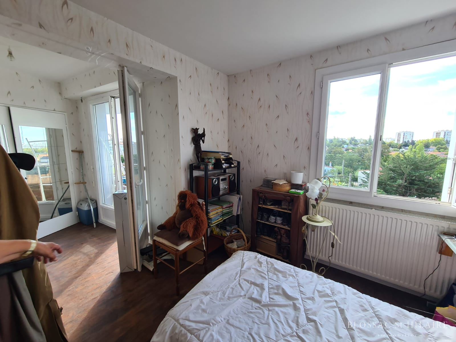 Une belle pièce de vie avec placard et accès grand balcon (belle vue sur POITIERS), un dégagement, une salle d'eau avec WC et une cuisine séparée semi-équipée.