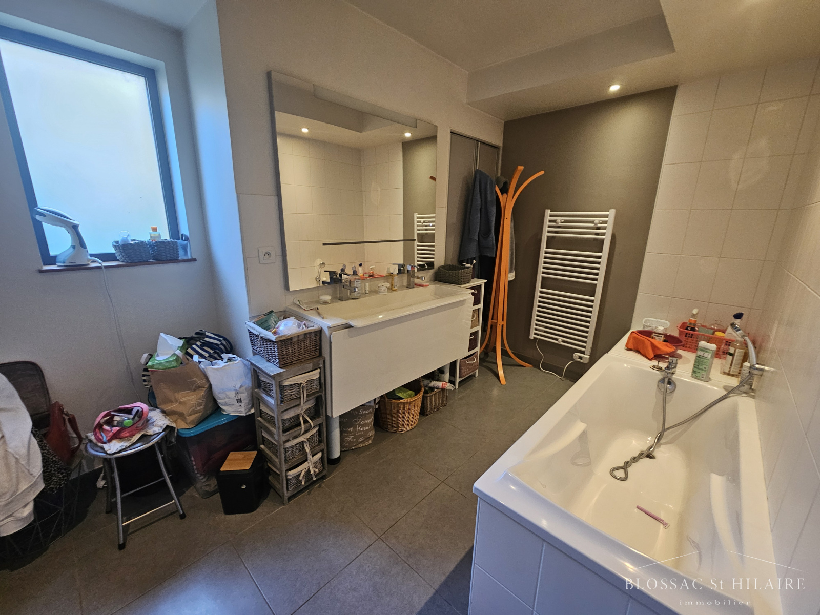 Saint-Benoît (86280)Saint-Benoît L'Ermitage, Maison construite de plain pied en 2011, d'environ 120 m2 comprenant entrée avec placard, WC, une grande pièce de vie d'environ 80 m2 avec poêle à granulés donnant sur la terrasse aménagée et centrale, cuisine aménagée ouverte, WC, chambre avec salle d'eau et placards, une suite parentale avec placards, salle de bains et dressing. Un grand garage avec partie buanderie.