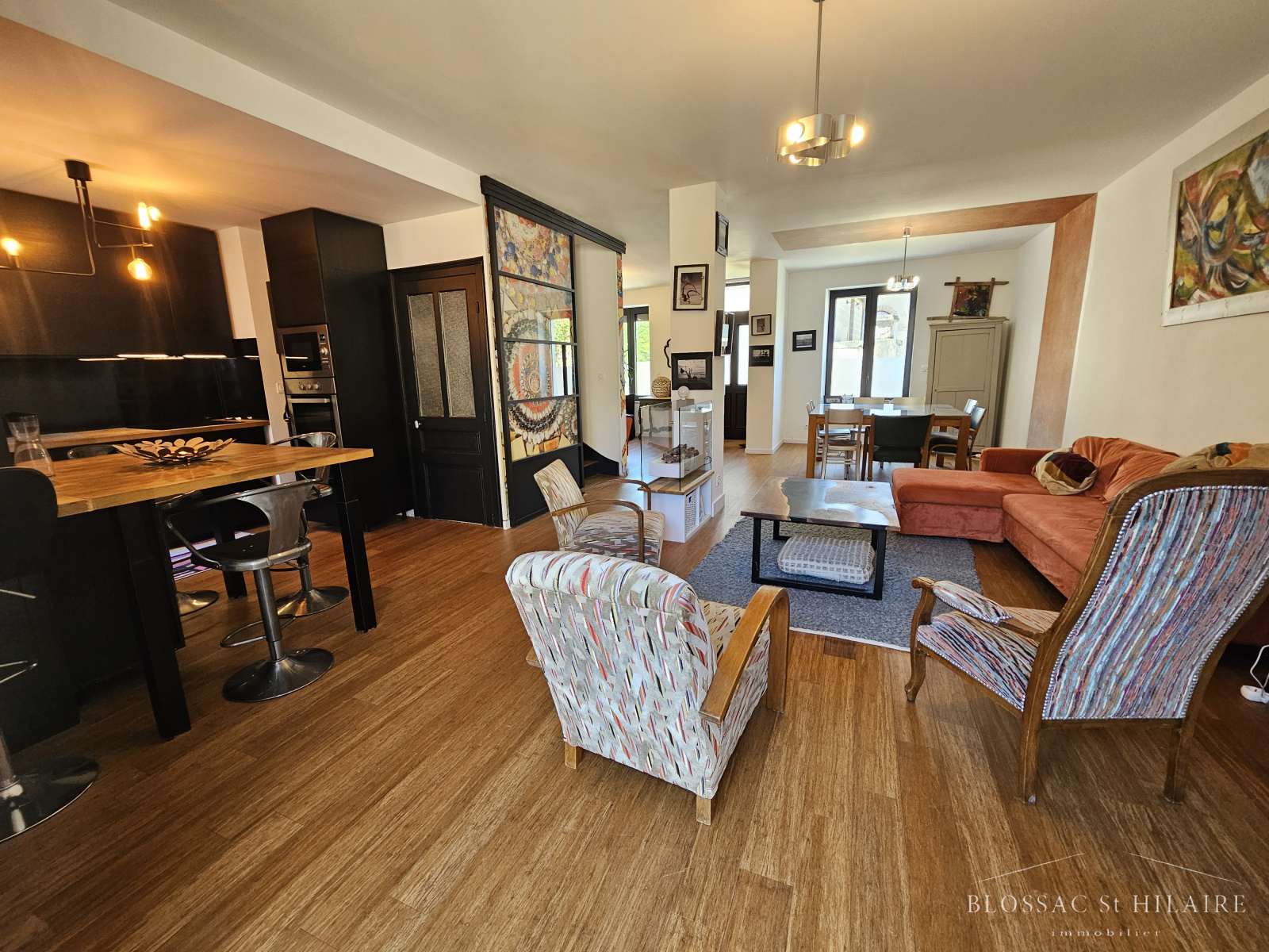 Vouillé (86190)Dans le bourg de Vouillé à proximité des commerces venez découvrir cette jolie maison entièrement rénovée en 2019 qui allie le cachet de l'ancien et le confort du moderne comrpenant : Une vaste entrée avec dressin desservant un grand salon/séjour avec une cuisine ouverte aménagée et équipée. A l'étage 5 chambres deux salles d'eau et deux WC. En face de la maison, plusieurs dépedndances avec garage et une cour pouvant acceuillir trois voitures.
